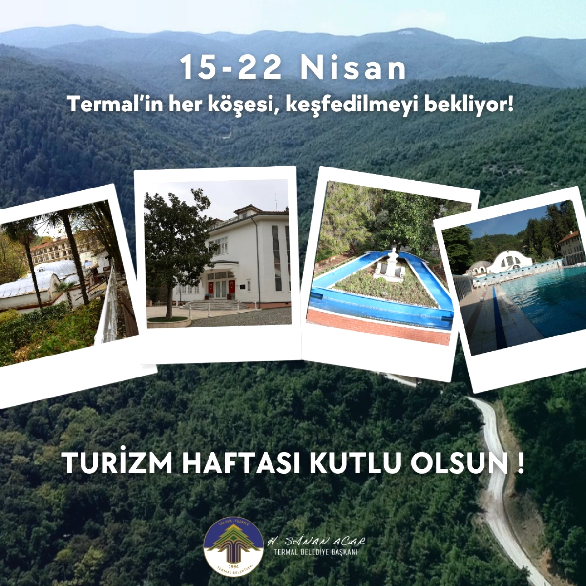 Yalova'nın Termal ilçesi Belediye Başkanı Hüseyin Sinan Acar, 15-22 Nisan tarihleri arasında kutlanan Turizm Haftası nedeniyle önemli bir mesaj yayınladı. Başkan Acar, ilçenin sahip olduğu doğal güzellikler, tarihi dokusu ve kültürel zenginliklerin korunması ve tanıtılması gerektiğini ifade etti.