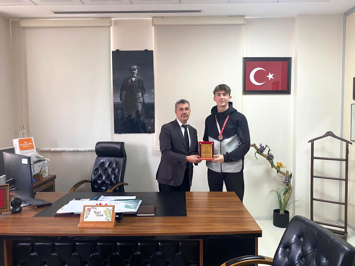 Elde ettiği bu önemli başarının ardından genç karateci, Mustafakemalpaşa İlçe Millî Eğitim Müdürü Veysel Çalık'ı makamında ziyaret etti. Ziyarette, öğrencinin başarısından duyduğu memnuniyeti dile getiren Müdür Çalık, genç sporcuyu tebrik ederek başarılarının devamını diledi.