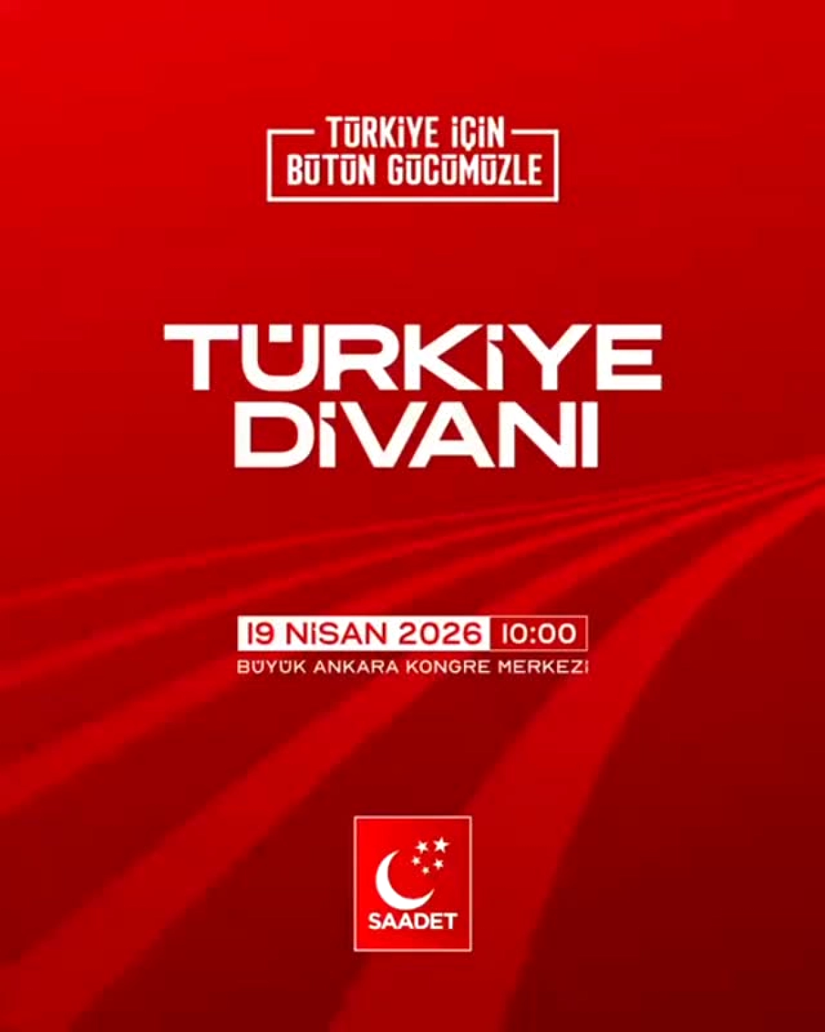 Saadet Partisi, 19 Nisan 2026 Pazar günü Ankara'da önemli bir siyasi organizasyona imza atmaya hazırlanıyor. Antalya Milletvekili ve Saadet Partisi YİK Üyesi Şerafettin Kılıç'ın sosyal medya üzerinden yaptığı duyuruya göre, "Türkiye Divanı" başlıklı toplantı saat 10:00'da Büyük Ankara Kongre Merkezi'nde gerçekleştirilecek.