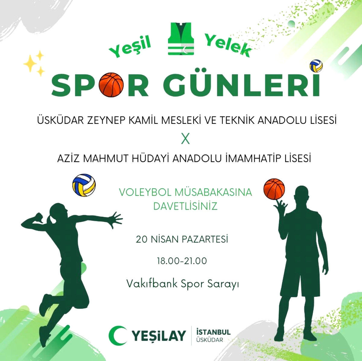 Yeşilay Üsküdar Şubesi Gençlik Komisyonu, gençleri sporla buluşturmak amacıyla düzenlediği Yeşil Yelek Spor Günleri kapsamında anlamlı bir voleybol müsabakası organize ediyor.