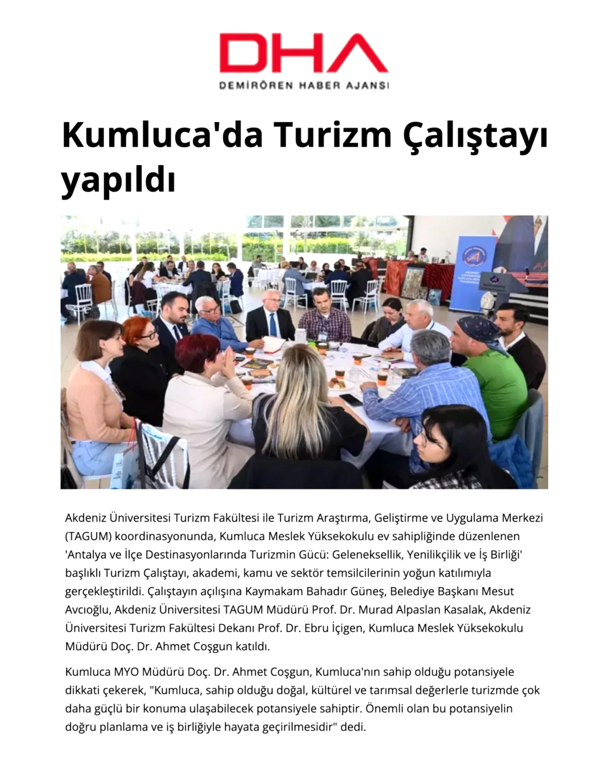 Akdeniz Üniversitesi TAGUM'un turizm araştırmalarındaki uzmanlığı ve Kumluca Meslek Yüksekokulu'nun bölgeye özgü eğitim programları, bu tür çalıştayların bilimsel temelde şekillenmesine olanak tanıyor.