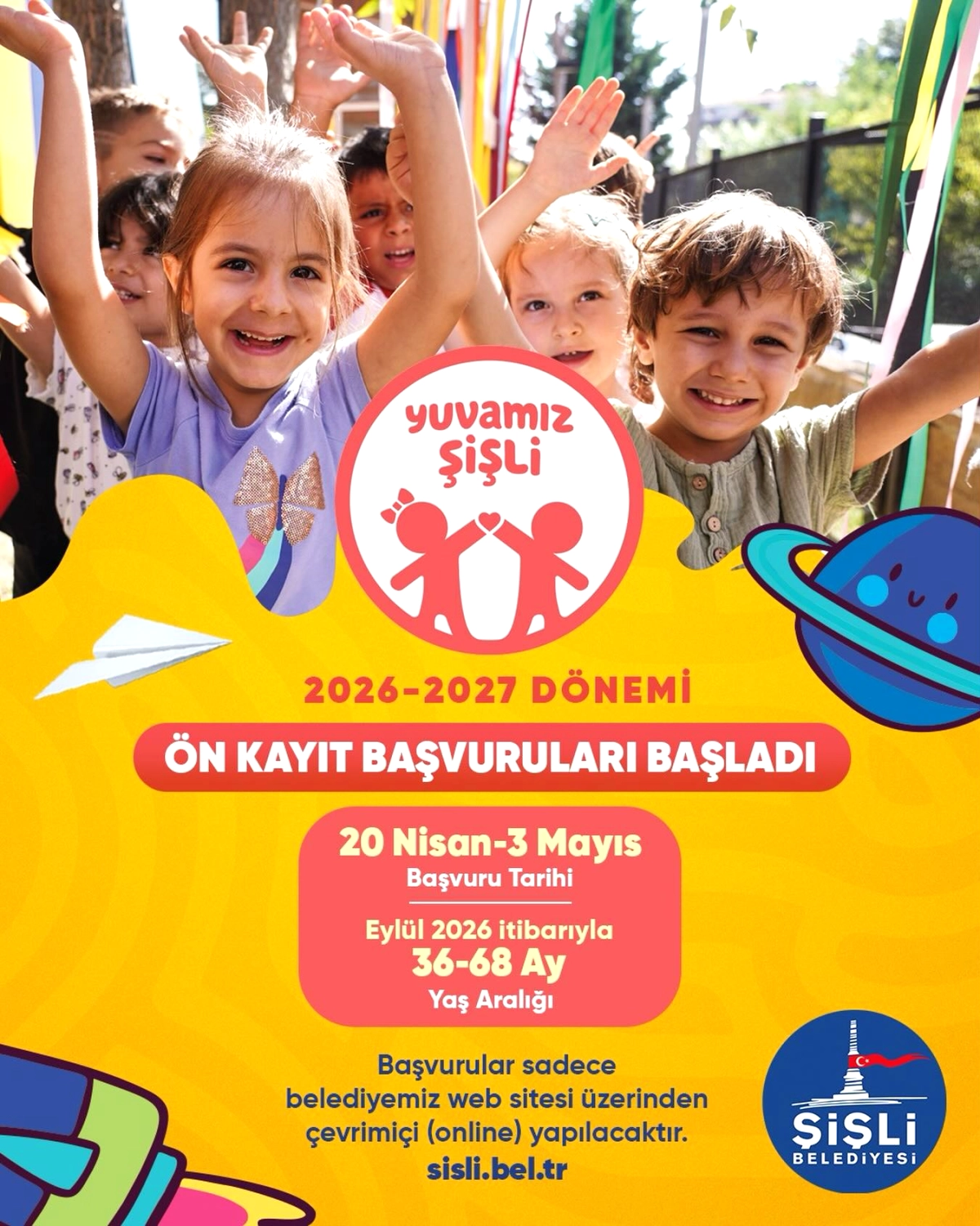 Şişli Belediyesi, ilçede yaşayan aileler için önemli bir eğitim hizmeti olan Yuvamız Şişli kreşinde yeni dönem kayıt sürecini başlattı. 20 Nisan 2026 Pazartesi günü itibarıyla başlayan ön kayıt başvuruları, 3 Mayıs 2026 tarihine kadar devam edecek.