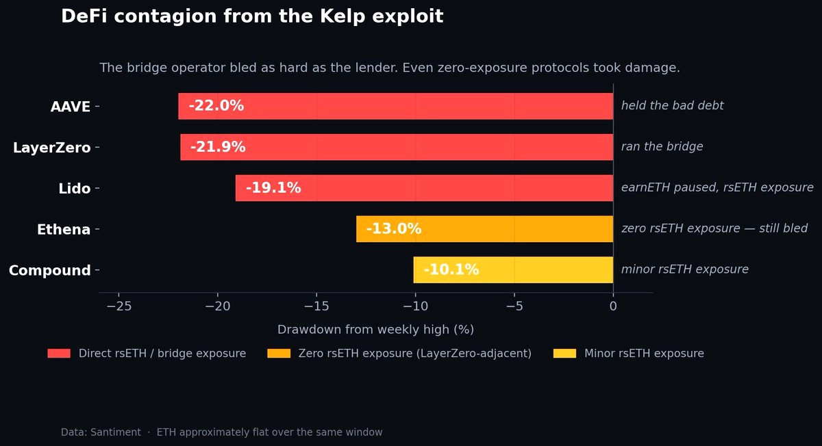 LayerZero (ZRO) tam olarak %22 değer kaybı yaşayarak piyasanın köprü operatörünü de borç veren kadar sorumlu tuttuğunu gösterdi. ZRO tokeni, rsETH'nin taşınmasında kullanılan köprü altyapısını işletmesi nedeniyle doğrudan hedef haline geldi.