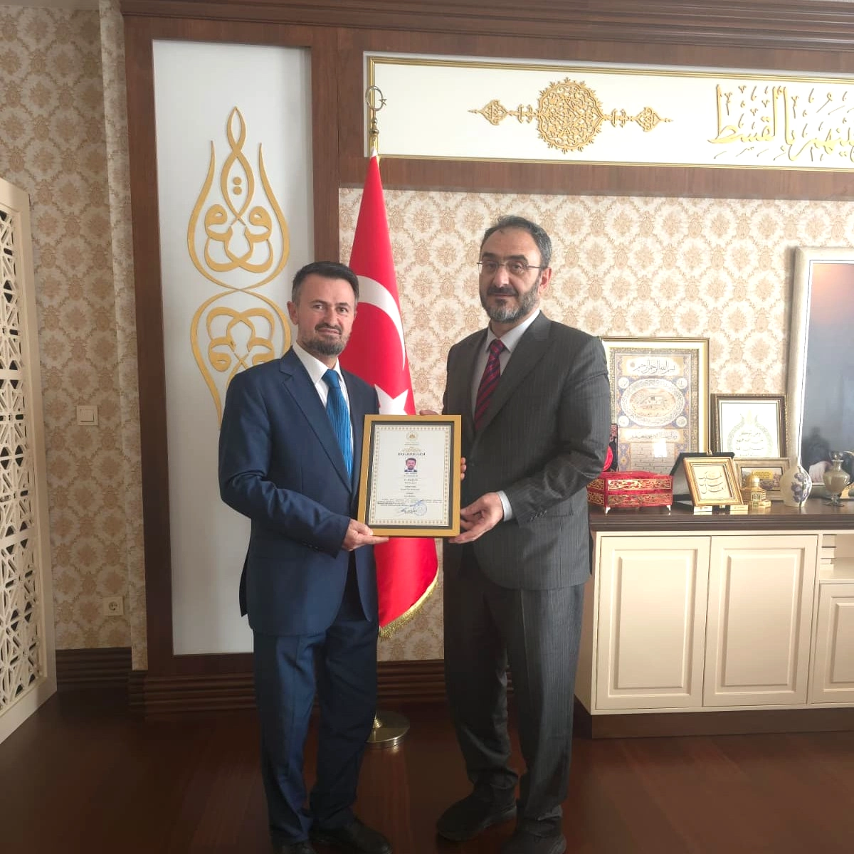 Bursa İl Müftüsü Yavuz Selim Karabayır, resmi bir törenle Kestel İlçe Müftüsü Dr. Faruk Çelik'e başarı belgesi takdim etti. Belge, Bursa Valisi Sayın Erol Ayyıldız tarafından tevdi edilmiş olup, Dr. Çelik'in ilçe müftülüğü görevi boyunca yürüttüğü başarılı çalışmaların resmi takdiri niteliğinde.