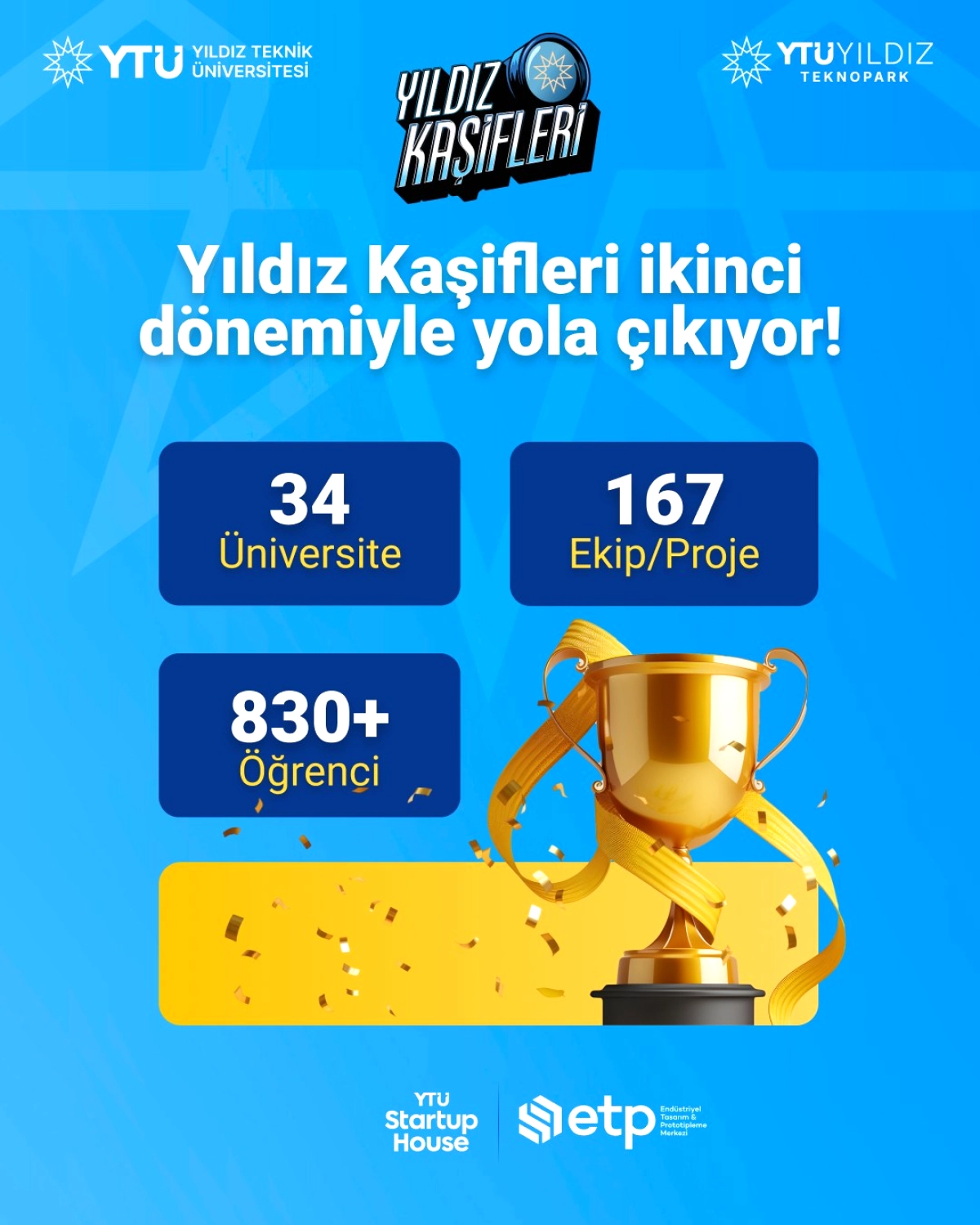 Yıldız Teknik Üniversitesi (YTÜ) ve YTÜ Yıldız Teknopark iş birliğiyle yürütülen Türkiye'nin üniversitelerarası en büyük girişimcilik programı Yıldız Kaşifleri, ikinci dönemine rekor katılımla başladı. Program bu yıl 34 farklı üniversiteden gelen 167 takım ve 830 öğrenciye ulaştı.