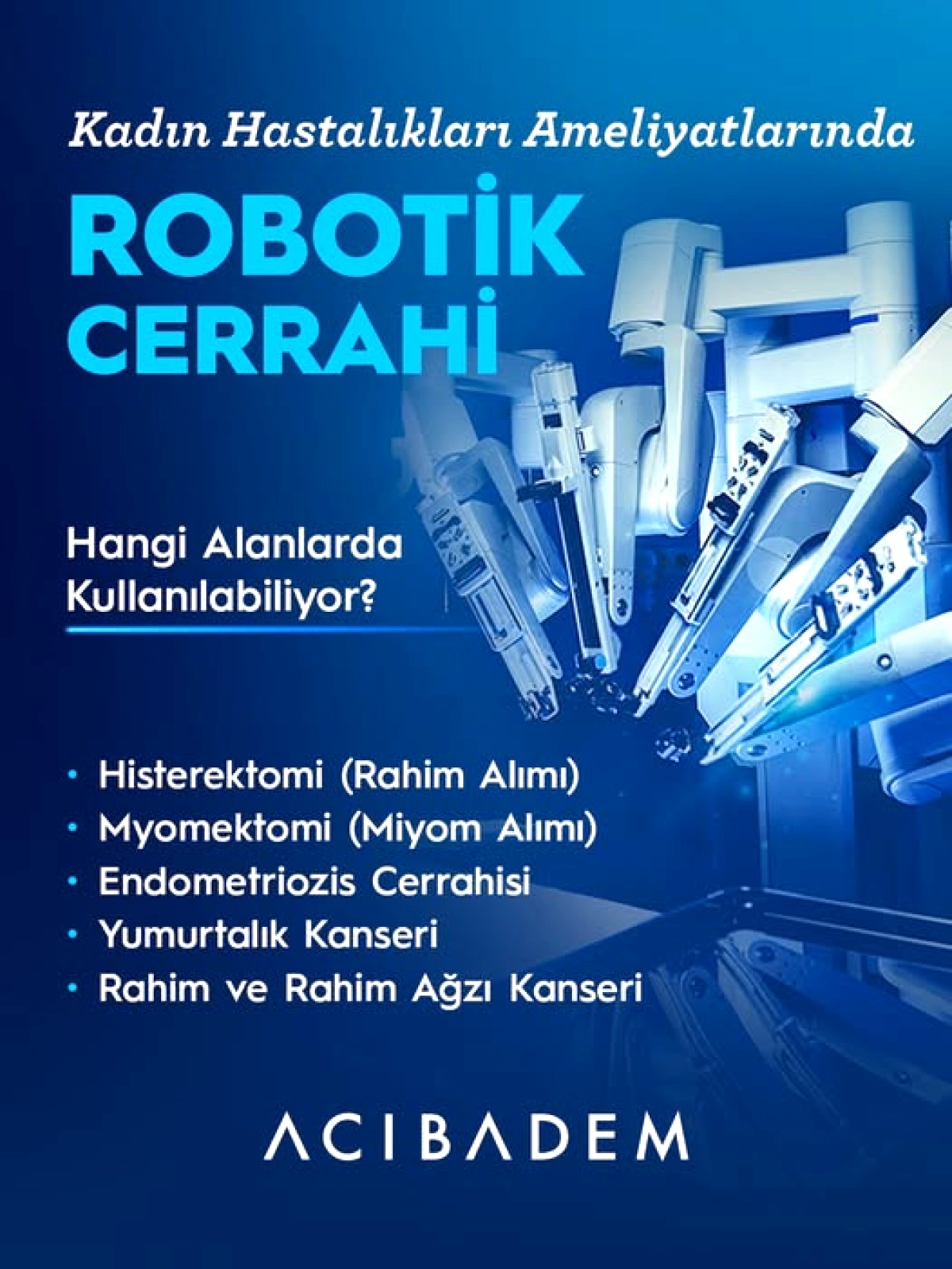 Robotik cerrahi sistemi özellikle histerektomi (rahim alma), miyomektomi (miyom çıkarma) ve endometriozis cerrahisi gibi jinekolojik prosedürlerde kullanılıyor. Uygun hasta seçimiyle birlikte bu teknoloji, doktor kontrolünde güvenle uygulanabiliyor.