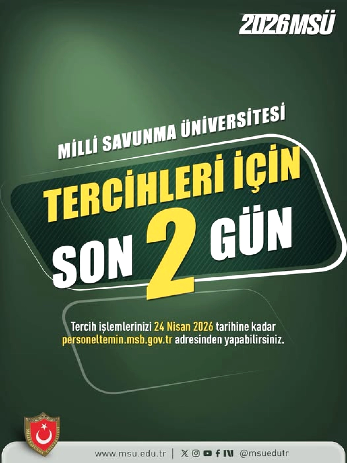 Henüz tercih işlemlerini tamamlamamış adaylar, Milli Savunma Bakanlığı'nın resmi internet adresi personeltemin.msb.gov.tr üzerinden işlemlerini gerçekleştirebilecek. Sistem, yarın akşam saat 18:00'da kapanacak. MSÜ, Türk Silahlı Kuvvetleri'nin subay ve astsubay ihtiyacını karşılamak üzere 2005 yılında kurulmuş ve her yıl binlerce gencin askeri kariyer hayalini gerçekleştirmesine olanak sağlıyor. Üniversite, harp okulları ve astsubay meslek yüksekokullarından oluşan kapsamlı bir eğitim ağı sunuyor.