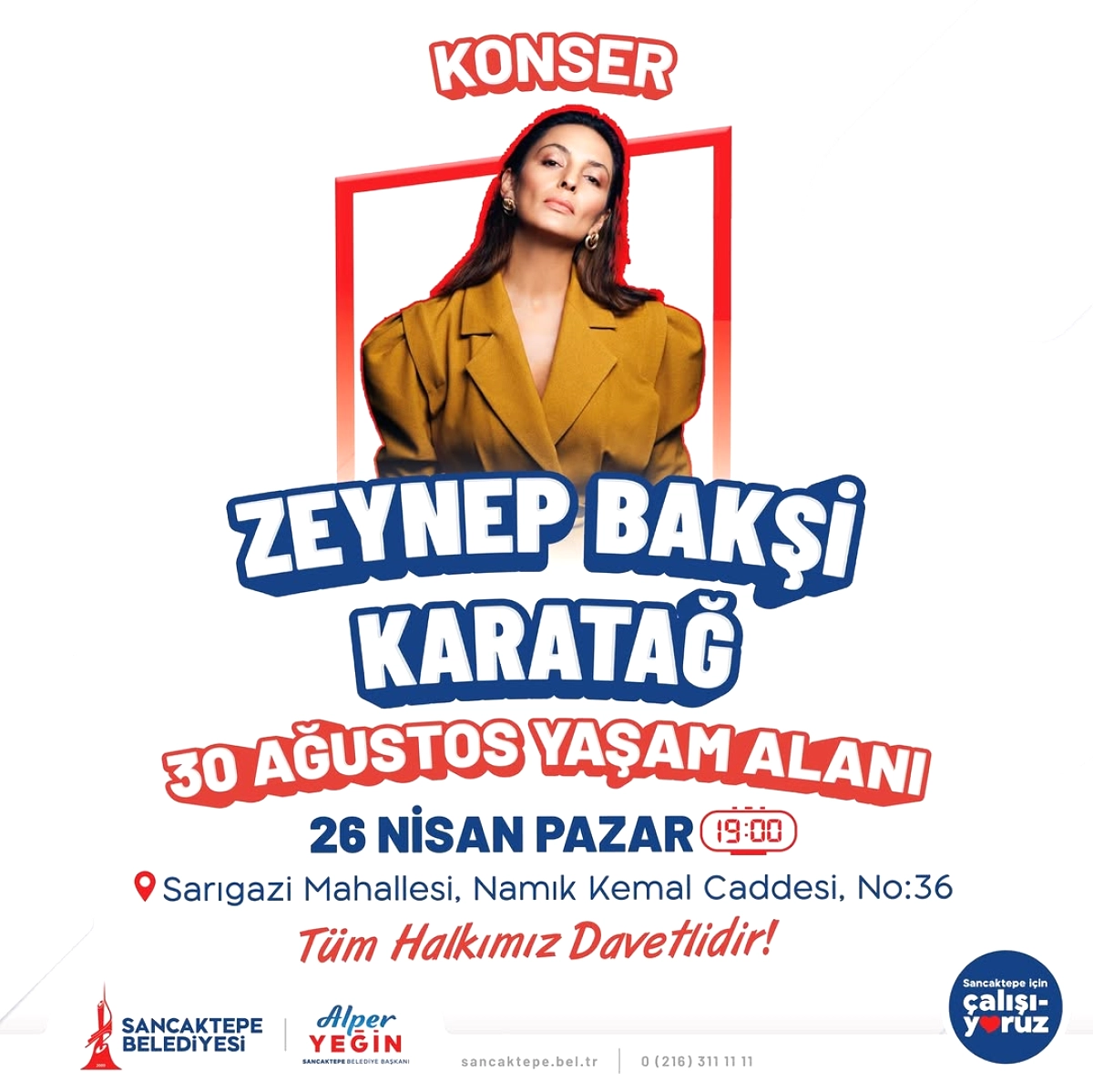 Etkinlik, Sarıgazi Mahallesi Namık Kemal Caddesi No: 36 adresinde düzenlenecek. Tunceli kökenli, Almanya'da yaşayan Zeynep Bakşi Karatağ, büyük beğeni toplayan "Mozaik" ve "Usulca" albümlerinden birbirinden güzel şarkılarıyla katılımcılara unutulmaz bir gece yaşatacak.