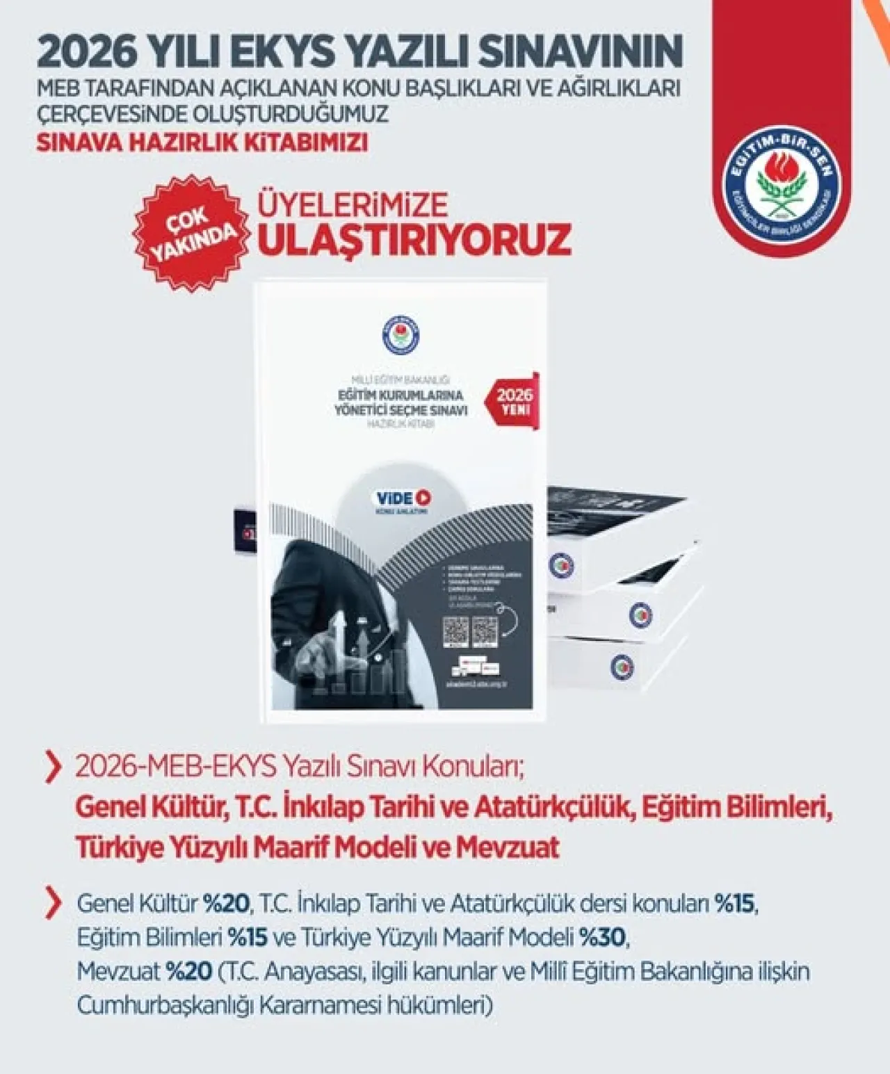 Sendika, üyelerinin sınav sürecine destek olmak amacıyla özel bir hazırlık kitabı hazırladı. EKYS Hazırlık Kitabı'nın, açıklanan müfredata uygun, zengin bir içerikle yakın zamanda yayınlanması planlanıyor. Bu kaynak, üyelerin kariyer basamaklarında yükselmeleri için güçlü bir yardımcı olacak.